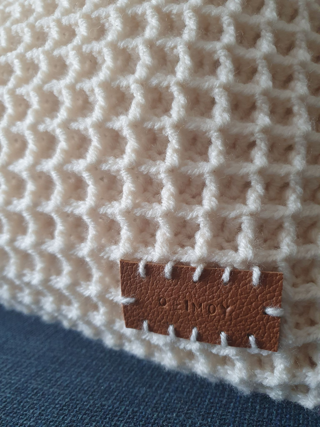 Hoes in wafelsteek (niet afneembaar): 100% acryl, met label van kunstleer