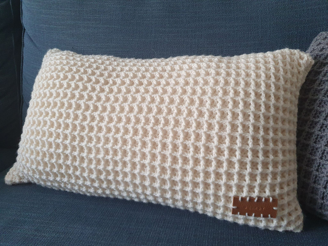 Gehaakt kussen in wafelsteek - crèmewit, 35x60cm