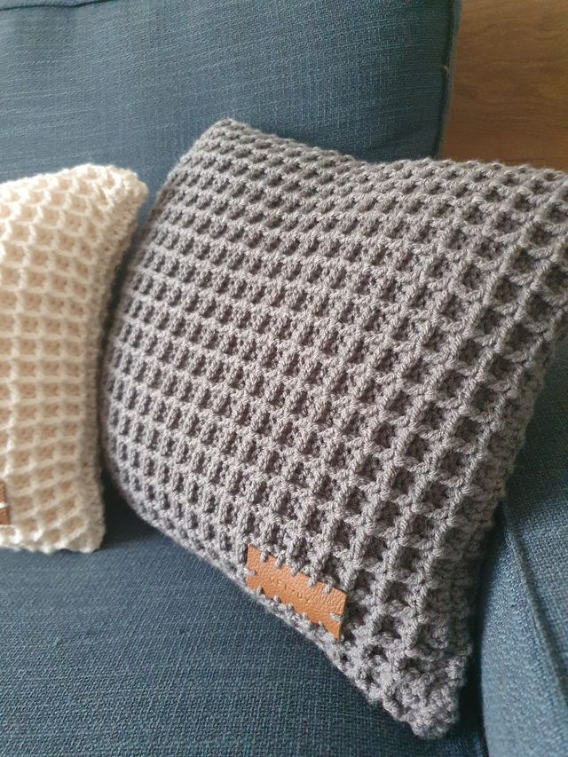 Gehaakt kussen in wafelsteek - grijs, 40x40cm