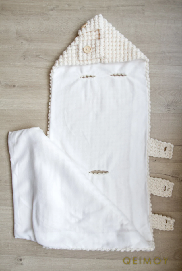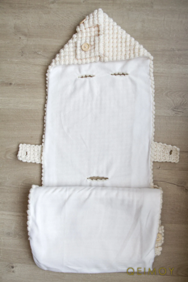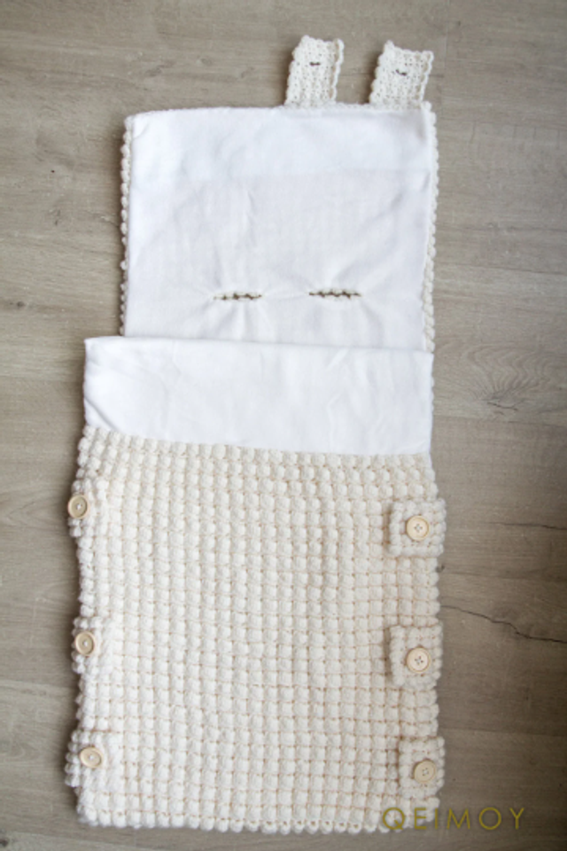 Handgemaakte voetenzak/trappelzak/slaapzak met voering (cremewit)