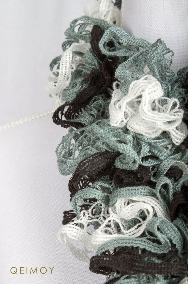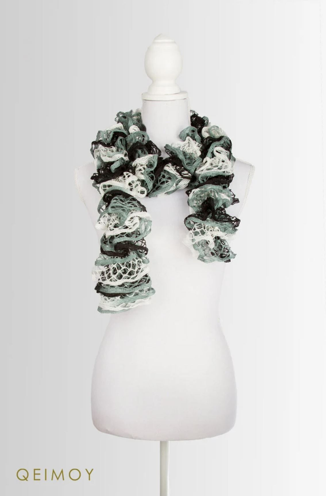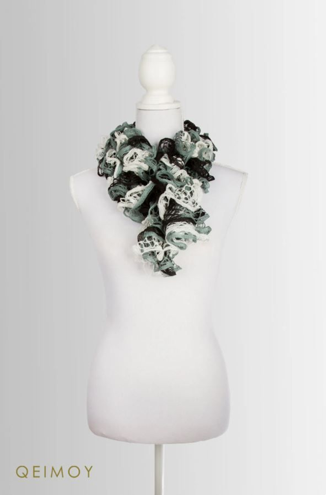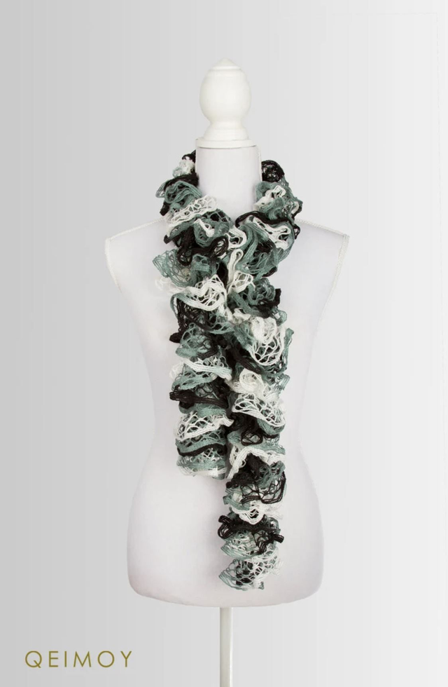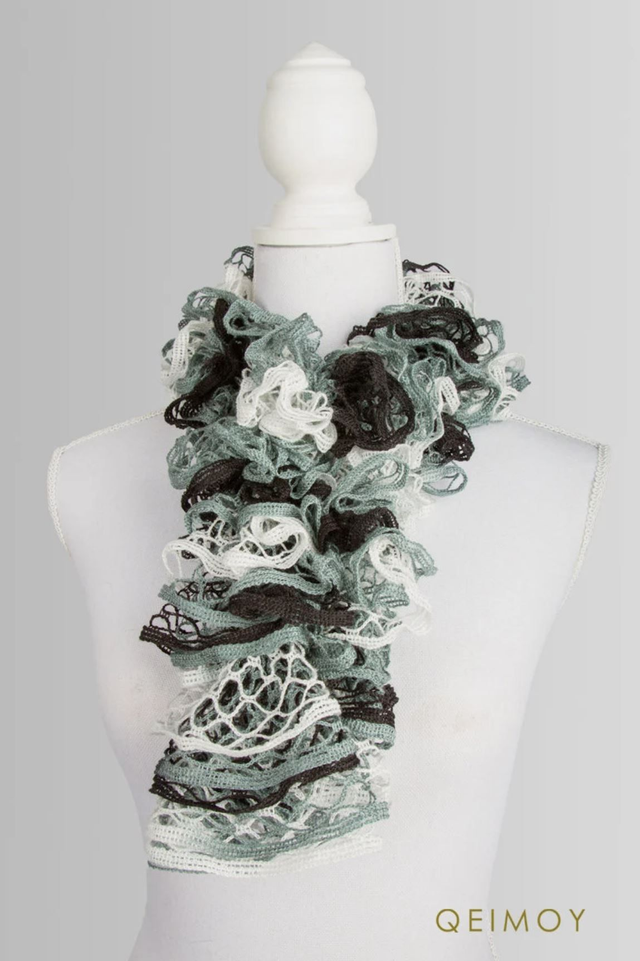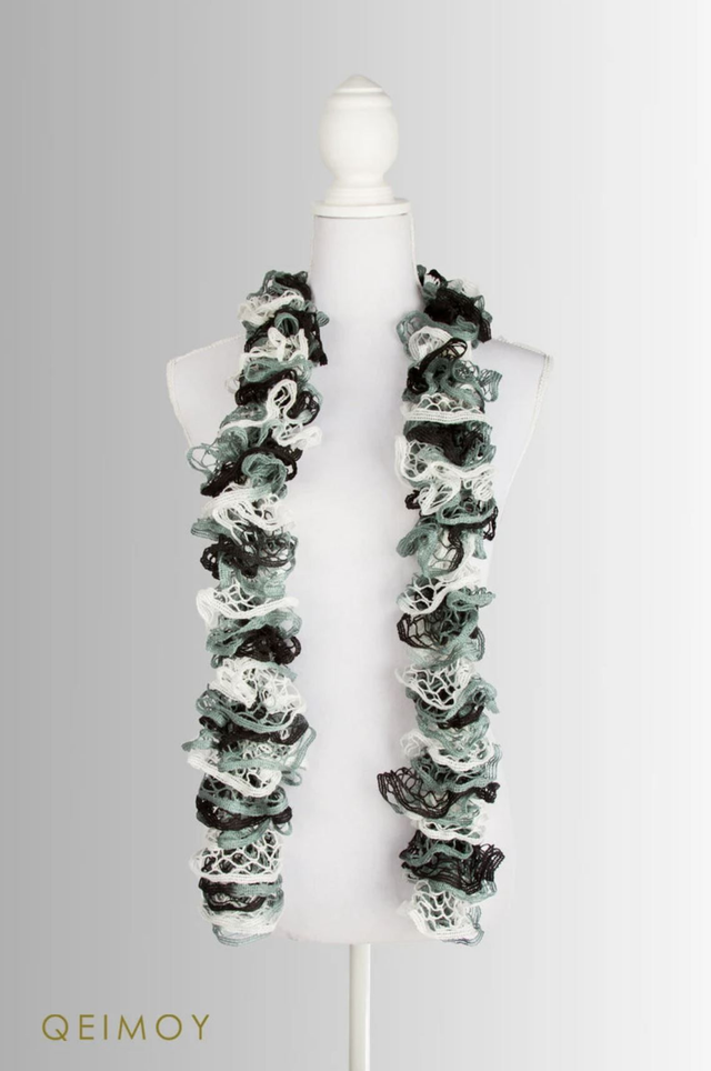 Handgebreide partysjaal met open netstructuur - zwart/wit/grijs.