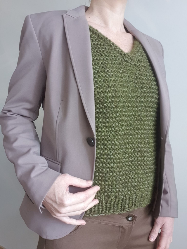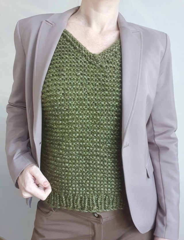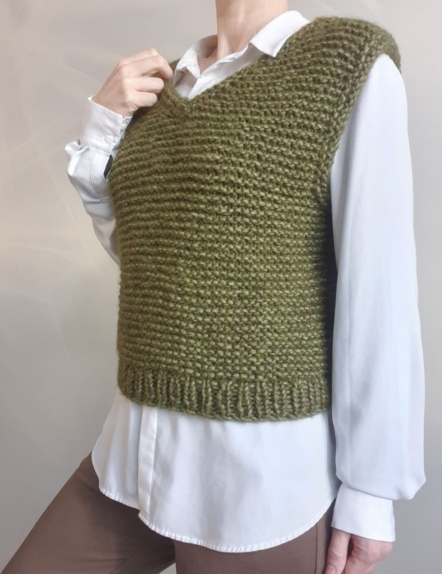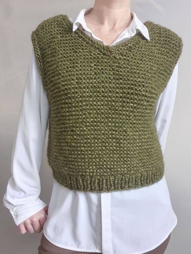Deze mouwloze trui is handgebreid van een zachte en lekker warme garenmix met alpaca, katoen en wol.